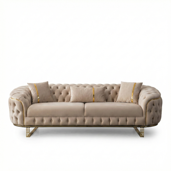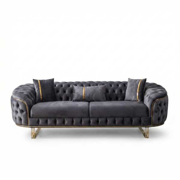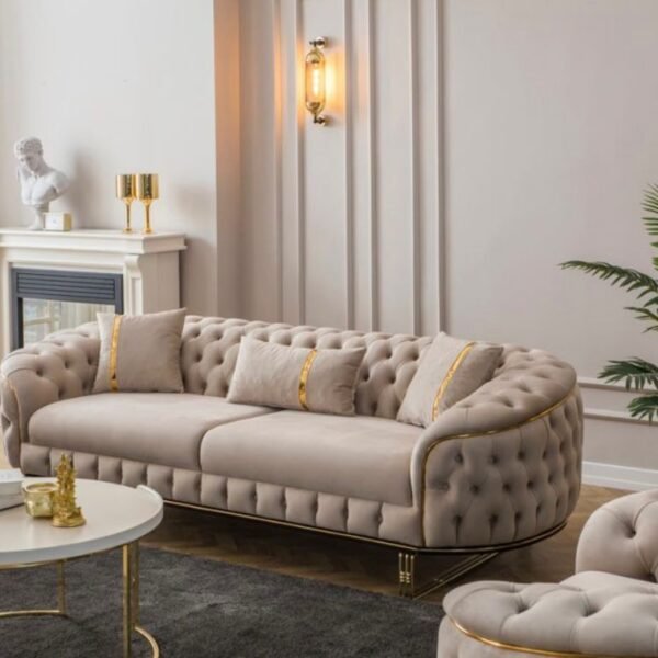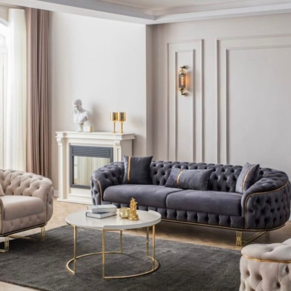 Predstavljamo vam našu vrhunsku sofu izrađenu u Turskoj – pravo remek-djelo elegancije i izdržljivosti. Pažljivo ručno izrađena od punog drveta, ova sofa se ističe besprijekornom izradom i luksuznom baršunastom (pliš) presvlakom koja vašem prostoru daje notu sofisticiranosti i topline. Kombinacija kvalitetne konstrukcije i meke, bogate teksture čini je savršenim izborom za udoban i elegantan dom, zadržavajući svoj raskošan izgled kroz svakodnevnu upotrebu.