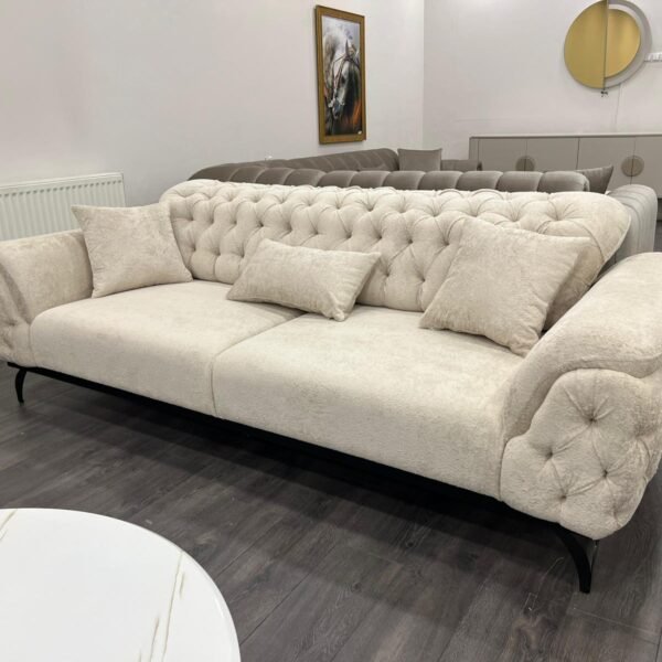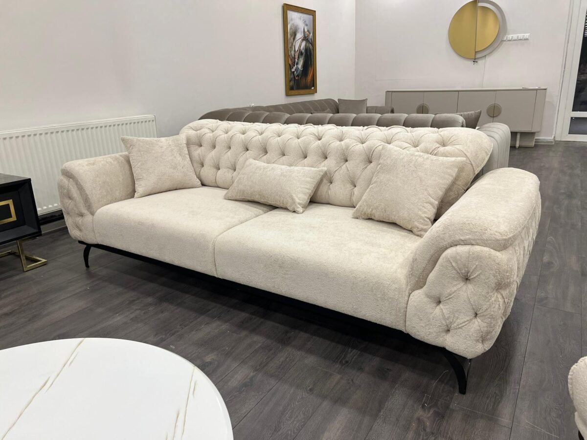 Predstavljamo vam našu vrhunsku sofu izrađenu u Turskoj – pravo remek-djelo elegancije i izdržljivosti. Pažljivo ručno izrađena od punog drveta, ova sofa se ističe besprijekornom izradom i luksuznom baršunastom (pliš) presvlakom koja vašem prostoru daje notu sofisticiranosti i topline. Kombinacija kvalitetne konstrukcije i meke, bogate teksture čini je savršenim izborom za udoban i elegantan dom, zadržavajući svoj raskošan izgled kroz svakodnevnu upotrebu.