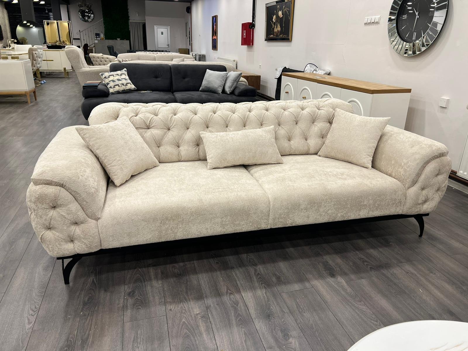 Predstavljamo vam našu vrhunsku sofu izrađenu u Turskoj – pravo remek-djelo elegancije i izdržljivosti. Pažljivo ručno izrađena od punog drveta, ova sofa se ističe besprijekornom izradom i luksuznom baršunastom (pliš) presvlakom koja vašem prostoru daje notu sofisticiranosti i topline. Kombinacija kvalitetne konstrukcije i meke, bogate teksture čini je savršenim izborom za udoban i elegantan dom, zadržavajući svoj raskošan izgled kroz svakodnevnu upotrebu.